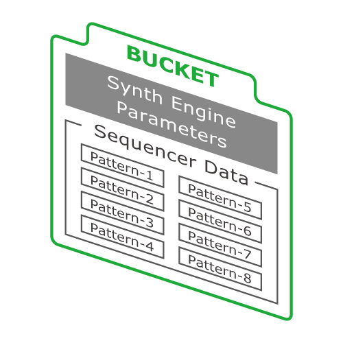 ……このように、1 – 8 の各バケットに音色を設定するか、バケットにプリセットをロードしておけば、何度もプリセットをロードを繰り返すことなく、いつでも8つの音色を素早く切り替えて(リコールして)演奏することができるわけです。