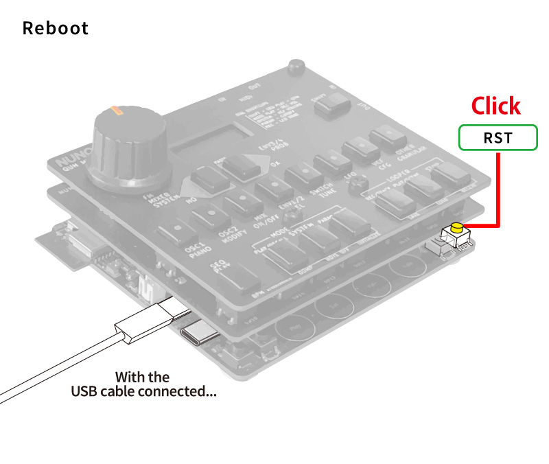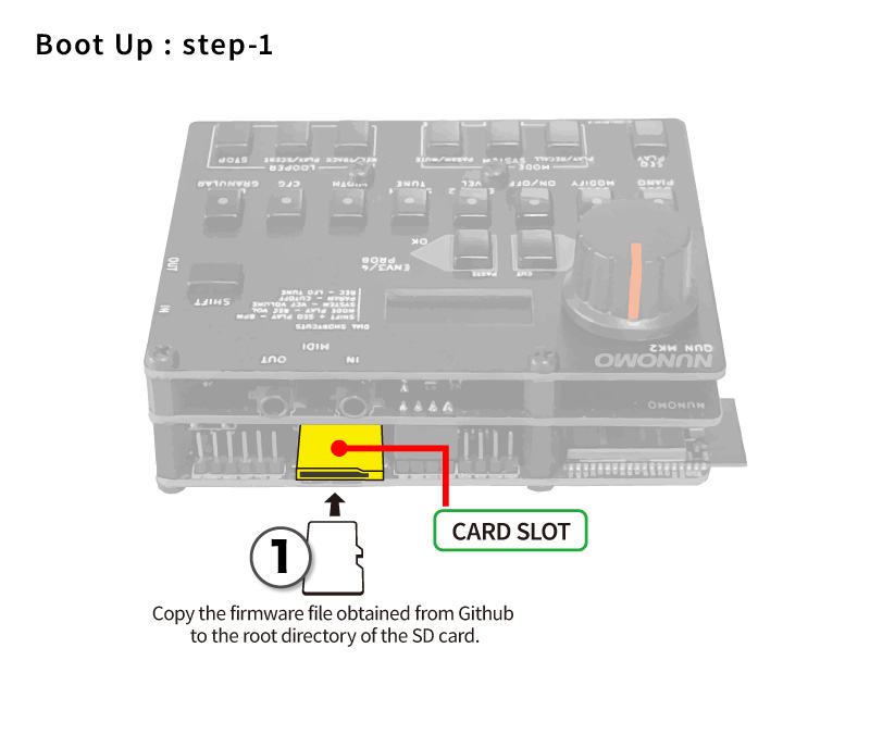 起動とリブート アウトライン 2024.02.19 Qun mk2は、原則としてUSBケーブル(Type:B)による給電をうけて起動・動作します。 充電式バッテリーを組み付けることで、単体での電源オン・オフに対応できますが、自己責任によるDIYとなり保証は受けられませんのでご注意ください。(Discordの「battery_mod」チャンネルでサポートを受けることはできます。 起動 1SDカードをスロットに装着する Qun mk2の作動にはSDカードが必須です。あらかじめ、最新のファームウェアをSDカードのルート・ディレクトリ直下にコピーしておいてください。(購入時には出荷時点で最新のファームウェアが収められています) Qun-mk2/firmware at main · raspy135/Qun-mk2Manual and presets for Qun mk2 synthesizer. Contribute to raspy135/Qun-mk2 development by creating an account on GitHub. SDカードを、Qun mk2の背面にあるカードスロットに装着してください。 2USBケーブルを装着する Qun mk2は基本的にUSBケーブル(Type-B)から給電することで作動します。 リブート 起動している状態で「RST」ボタンを押すことで再起動します。USBケーブルを抜く必要はありません。