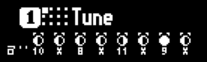 ただしOFF->ONになったステップのTUNEは[x] にセットされるので、発音はしません。Shift+5 で確認してみると、下のようになっています。