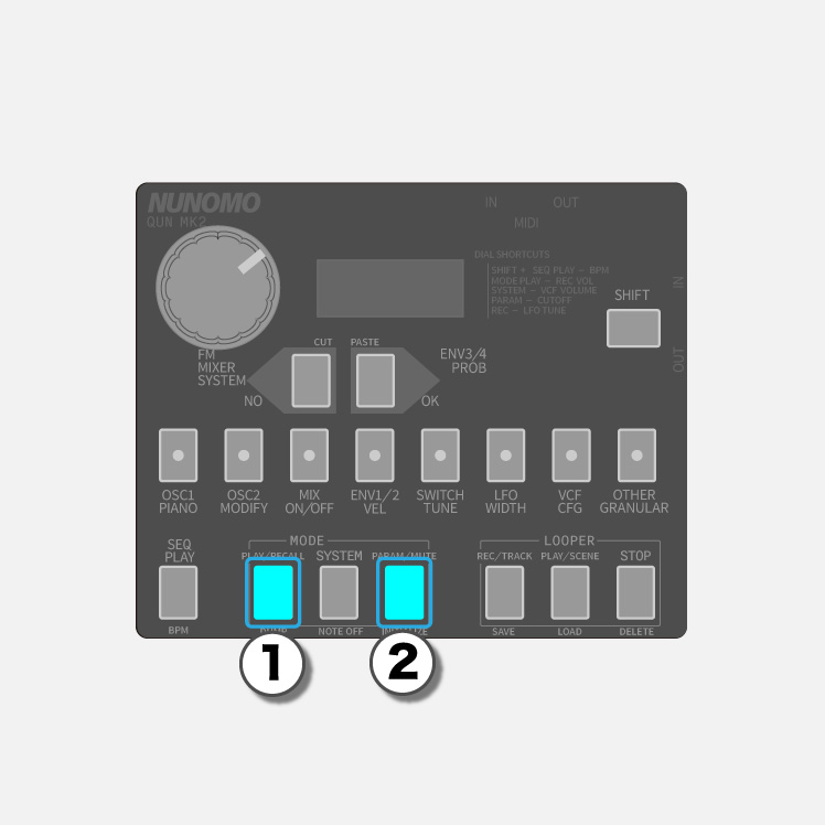 任意のタイミングで PLAY+PARAM を押しながら Dial を回します。