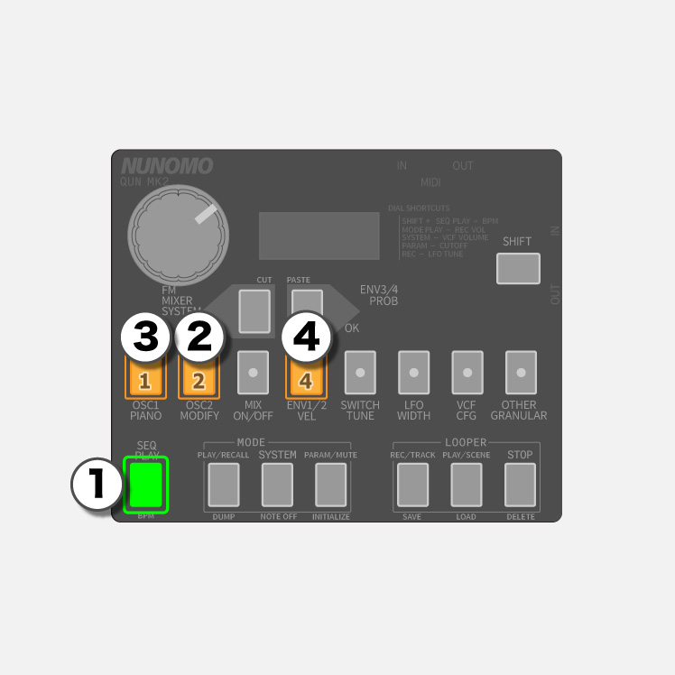 - 5PLAY を押して、3 つのパターンが同時に再生されることを確認してください。
