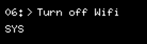 Wi-Fi機能のON/OFF SYSTEMモードWi-Fi機能をON/OFFする設定 2024.08.29 目次 Wi-Fi機能の状態確認状態の切り替えWi-Fi機能をOFFにするWi-Fi機能をONにするWi-Fi機能の詳細 Wi-Fi機能の状態確認 1 SYSTEM を押す。 2 Dial または 8 で項目を下へスクロールさせる。 3 状態を確認する。 画面 状態 Wi-Fi機能が「ON」になっている Wi-Fi機能が「OFF」になっている 状態の切り替え Wi-Fi機能をOFFにする 「Turn off Wifi」が選択された状態で OK を押す。 表示が「Turn on Wifi」になり、Wi-Fi機能がOFFになったことを示します。 Wi-Fi機能をONにする 「Turn on Wifi」が選択された状態で OK を押す。 表示が「Turn off Wifi」になり、Wi-Fi機能がONになったことを示します。 Wi-Fi機能の詳細 Wi-Fi機能ホームWi-Fiを介してPCなどからファイルやファームウェアを転送する機能について