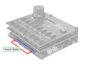 - タッチスライダーをアクティブにするには、下図のようにすべてのスイッチを下げる必要があります。